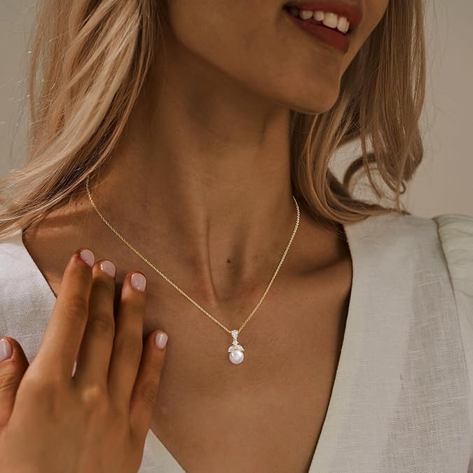Pearl Necklace for Women Trendy,14k Gold Plated Necklace Dainty Wedding Necklace -GOLD-Small CZ Pearl